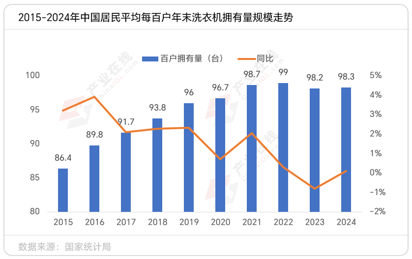 作者:yy易游官网 日期:2026-02-14 浏览: 来源:yy易游体育近年来,中国洗衣机市场完成了从增量市场向存量市场的转型。家电下乡时期释放的农村市场潜力为后续市场更新换代奠定了基础。国家统计局数据显示,当前中国居民平均每百户拥有量已接近百台,连续四年在98-99台之间徘徊。