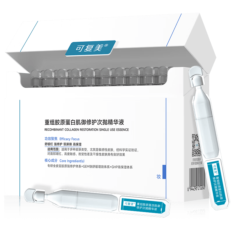 这款精华液以其独特的科技创新而闻名,采用先进的重组胶原蛋白技术,显著提升肌肤修护能力。对于敏感肌肤的使用者来说,它的快速舒缓效果尤为显著,能够有效缓解面部潮红和泛红问题。